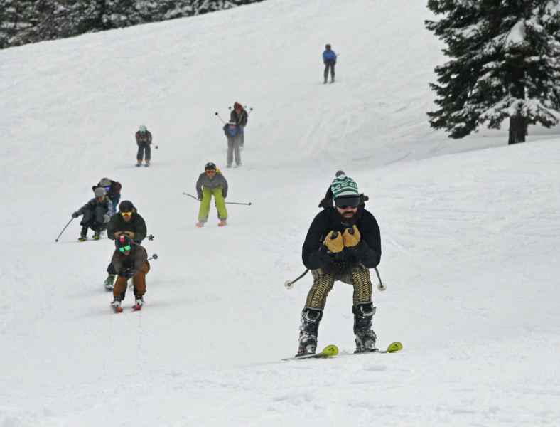 Snow, sun, smiling faces, sparkly outfits, fast skiers and so much more! It was an epic day. It started and ended in a snow storm. The sun came out middle of the day just in time for all the races. The fresh snow made the races a bit more challenging but smiles were all around as individuals crossed the finish line. As the sun set over the mountains, the music started, snow came down hard, and everyone made their way inside to dance the night away. It will be one for the memory books.
